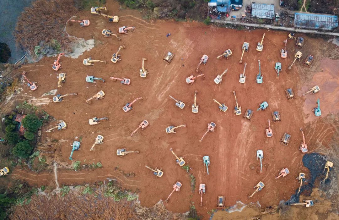 1月24日,火神山醫(yī)院開建,大型機械加緊施工。