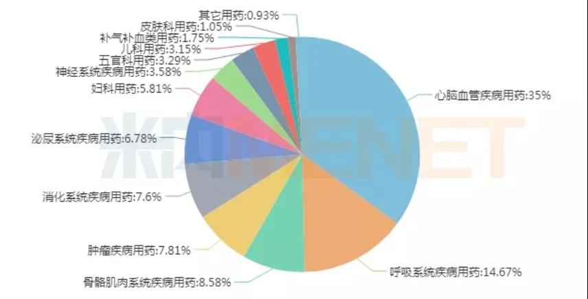 品類方面,中成藥涵蓋13個(gè)治療大類,心腦血管疾病用藥為中成藥市場(chǎng)第一暢銷大類,占據(jù)35%的市場(chǎng)份額,呼吸系統(tǒng)疾病用藥占比14.67%,骨骼肌肉系統(tǒng)用藥占比8.58%。