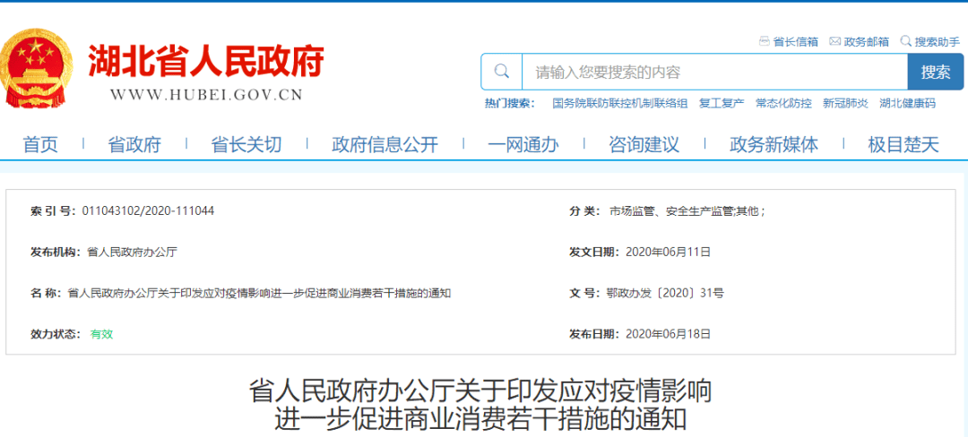 6月19日,湖北省人民政府官網(wǎng)發(fā)布了《應(yīng)對(duì)疫情影響進(jìn)一步促進(jìn)商業(yè)消費(fèi)若干措施》(以下簡(jiǎn)稱《措施》)。一共25條,涉及降本減負(fù)紓困、營(yíng)造消費(fèi)環(huán)境以及優(yōu)化監(jiān)管服務(wù)等措施。