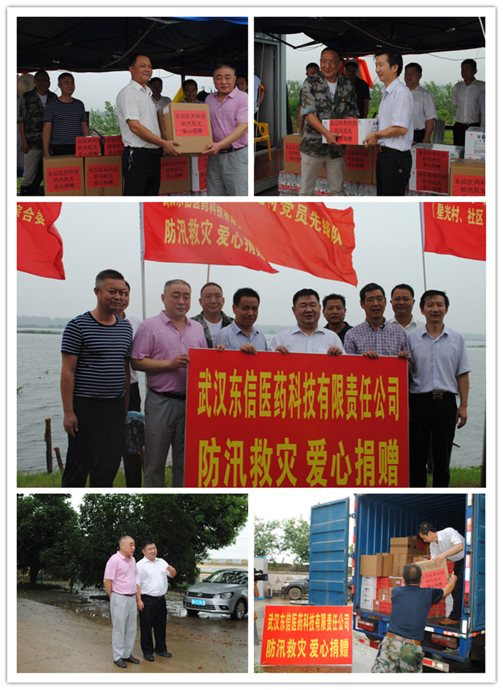 7月21日,蔡甸區(qū)政協(xié)胡朝暉主席,區(qū)委常委區(qū)委統(tǒng)戰(zhàn)部許永周書記、政協(xié)秘書長(zhǎng)鄒國(guó)棟、永安街黨工委書記計(jì)文華、蔡甸區(qū)經(jīng)濟(jì)開發(fā)區(qū)奓山街辦公室主任袁志凡、蔡甸區(qū)科技和經(jīng)濟(jì)信息化局周長(zhǎng)飛總工,蔡甸區(qū)奓山街黨工委副書記熊光輝等和武漢東信醫(yī)藥科技有限責(zé)任公司總經(jīng)理陳長(zhǎng)根、黨支部書記劉文富、質(zhì)量總監(jiān)黃鳳起、研發(fā)總監(jiān)鄭學(xué)文等一道,冒著大雨,驅(qū)車往返近百公里,向不分晝夜、堅(jiān)守在防汛一線的抗洪防汛人員送去了復(fù)方氨酚烷胺膠囊、金銀花露、蟲咬凝膠、植物驅(qū)蚊水、止癢酊等價(jià)值近22萬元的防暑降溫、驅(qū)蚊止癢的藥品和物資。