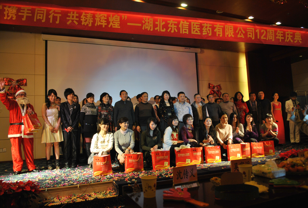 攜手同行,共鑄輝煌。踏著2010年冬天的第一場(chǎng)雪,湖北東信醫(yī)藥有限公司迎來(lái)了12周年華誕。12月24日,湖北東信醫(yī)藥有限公司12周年慶典在武漢市通院賓館隆重舉行。東信醫(yī)藥集團(tuán)、湖北東信藥業(yè)有限公司、湖北東信惠濟(jì)堂藥業(yè)有限公司、武漢東信醫(yī)藥科技有限責(zé)任公司、湖北東信醫(yī)藥有限公司的主要領(lǐng)導(dǎo)以及各部門的干部職工近兩百人出席了慶典活動(dòng)。