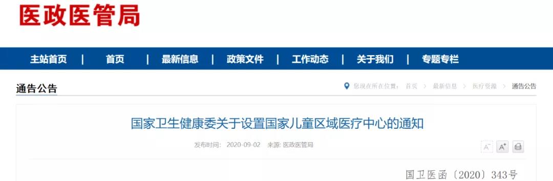 9月2日,國家衛(wèi)健委發(fā)布《國家衛(wèi)生健康委關(guān)于設(shè)置國家兒童區(qū)域醫(yī)療中心的通知》,決定在東北區(qū)域、華東區(qū)域、中南區(qū)域、西南區(qū)域、西北區(qū)域設(shè)置國家兒童區(qū)域醫(yī)療中心。