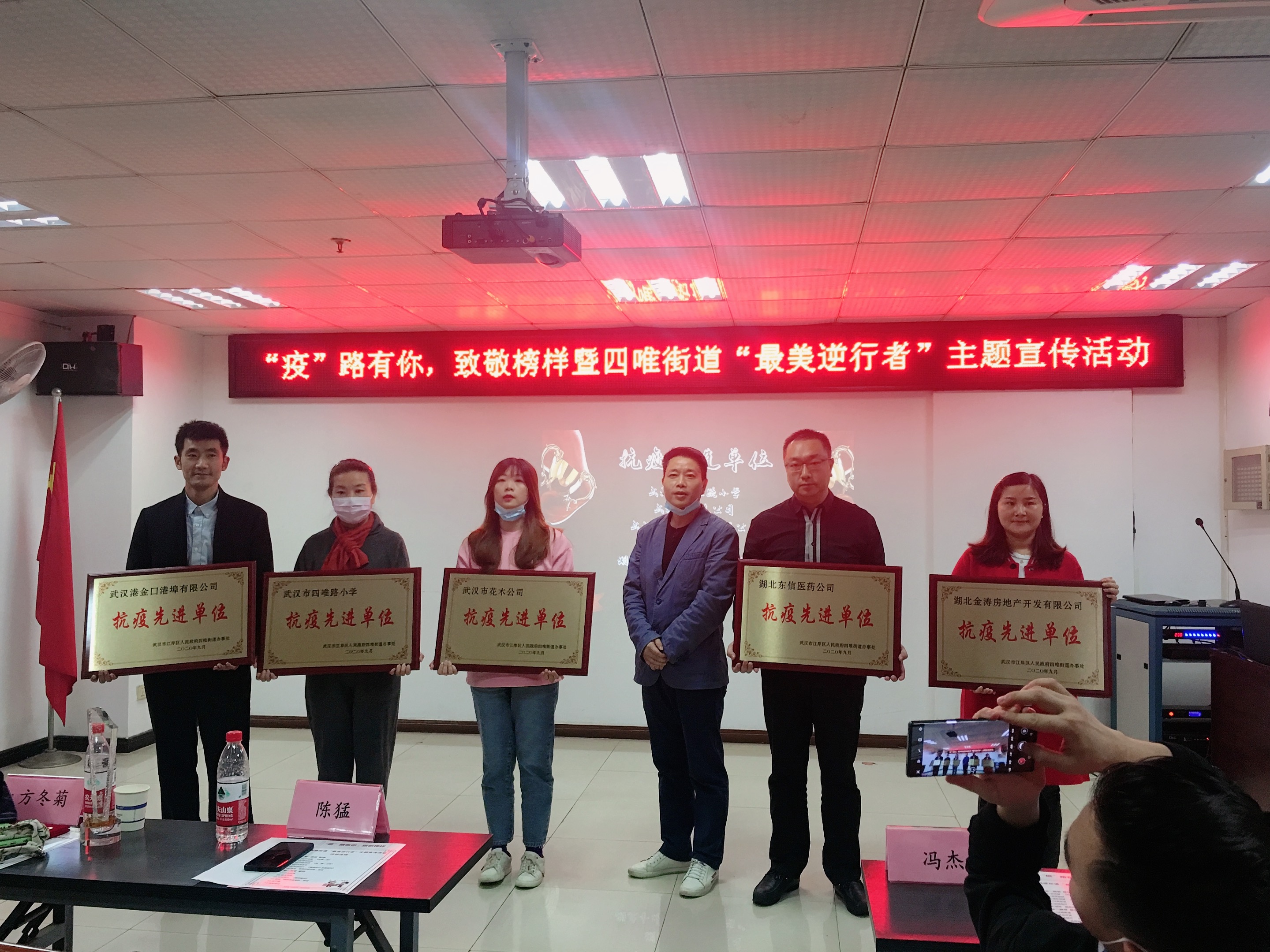 9月22日上午,受四唯街邀請(qǐng),湖北東信醫(yī)藥有限公司總經(jīng)理黃少偉和黨支部書(shū)記張琳來(lái)到四唯街麟趾社區(qū)參加 “疫”路有你,致敬榜樣暨四唯街道“最美逆行者”主題宣傳活動(dòng),東信醫(yī)藥榮獲抗疫先進(jìn)單位。