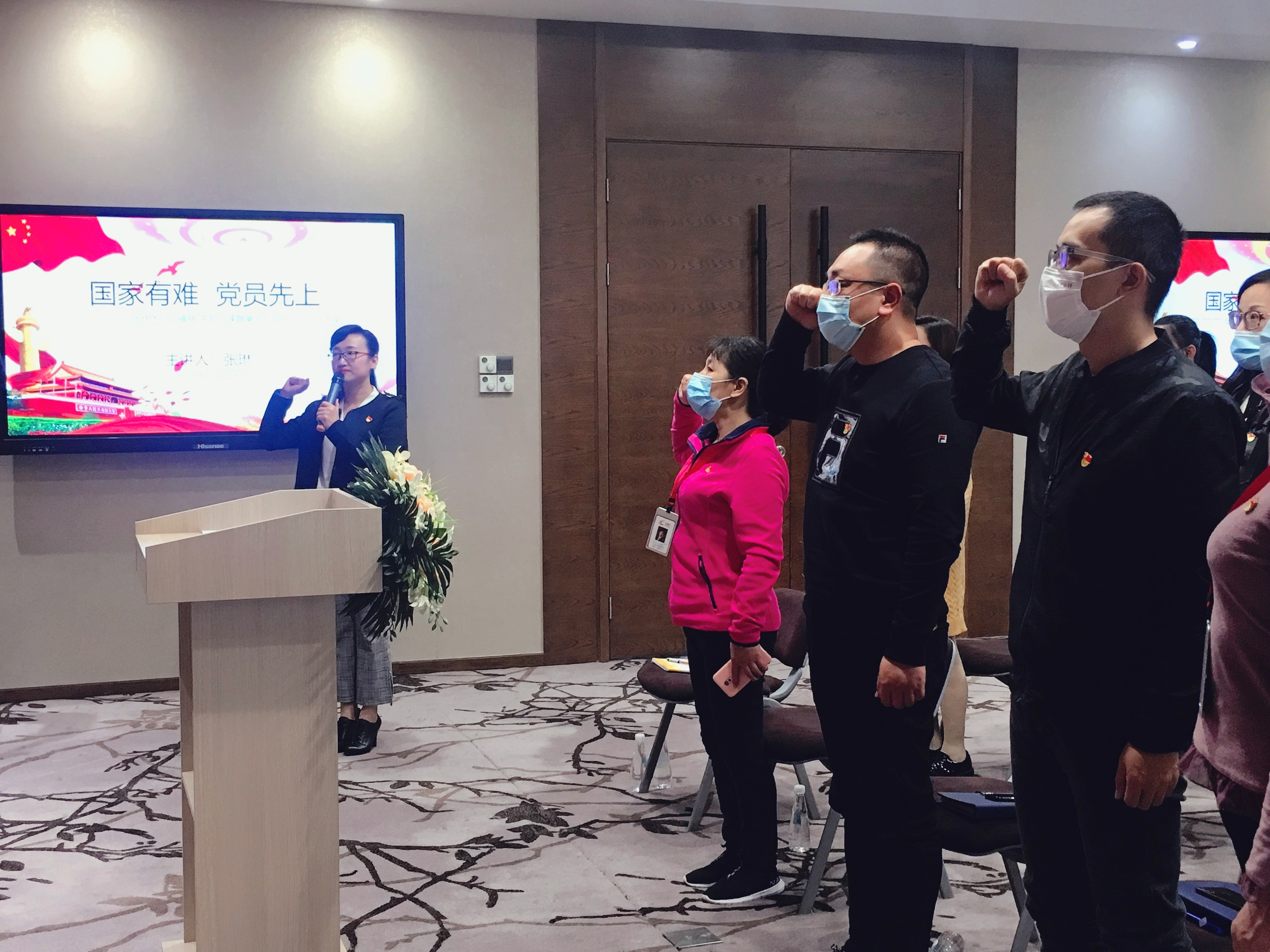 國家有難,黨員先上!多難興邦,興邦有我!千千萬萬的黨員們用行動擦亮了黨徽、用作為堅(jiān)守了初心、用實(shí)際行動踐行了入黨誓言。黨課最后,在莊嚴(yán)的黨旗下,所有黨員一起重溫了入黨誓詞,時(shí)刻牢記和堅(jiān)守一名共產(chǎn)黨員的初心和使命!