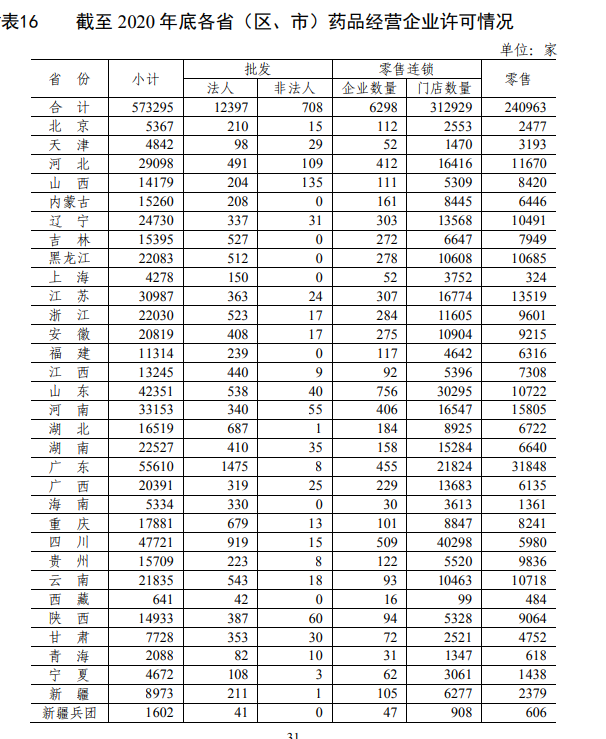 日前,國家藥品監(jiān)督管理局綜合和規(guī)劃財務(wù)司及國家藥品監(jiān)督管理局信息中心發(fā)布《藥品監(jiān)督管理統(tǒng)計年度報告(2020年)》(以下簡稱《報告》),《報告》分別對2020年藥品、醫(yī)療器械、化妝品的相關(guān)行政受理、審批、監(jiān)管等情況進行了匯總分析,披露了包括藥店數(shù)量、執(zhí)業(yè)藥師數(shù)量等不少藥店最關(guān)心的數(shù)據(jù)。