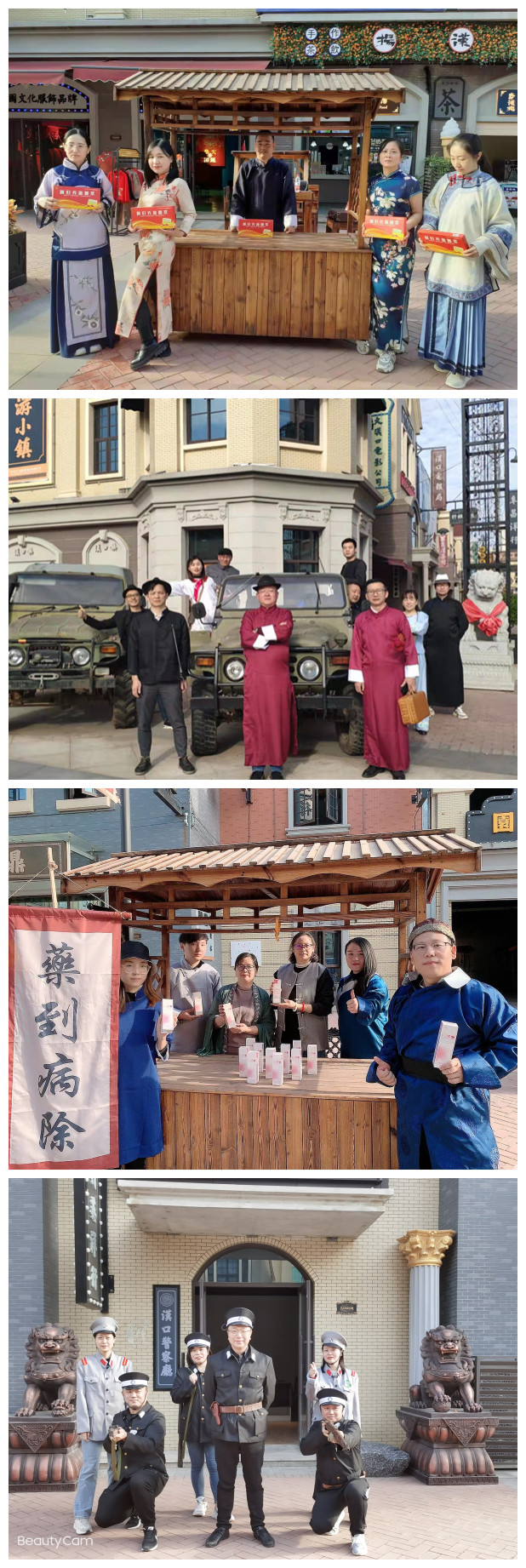 在「漢口鎮(zhèn)·戲碼頭」這個還原了上個世紀(jì)初葉老漢口風(fēng)貌的古鎮(zhèn)上,東信醫(yī)藥的家人們用一場穿越時(shí)空的沉浸式實(shí)景劇游“烽火圍城”,重溫民國時(shí)代的崢嶸歲月。