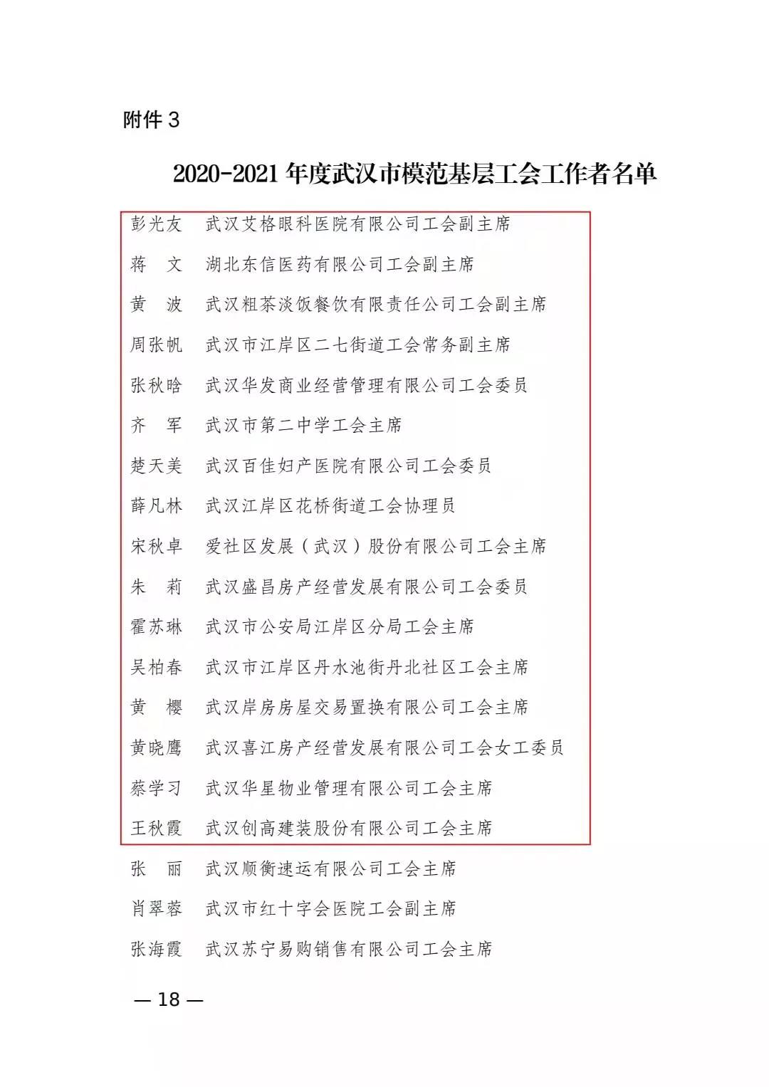 在武漢市總工會(huì)近日下發(fā)的“2020-2021年度武漢市模范基層工會(huì)工作者”通報(bào)中,湖北東信醫(yī)藥有限公司(下稱:東信醫(yī)藥)榮膺“2020-2021年度武漢市模范職工之家”稱號(hào),東信醫(yī)藥工會(huì)副主席蔣文榮獲“2020-2021年度武漢市模范基層工會(huì)工作者”。