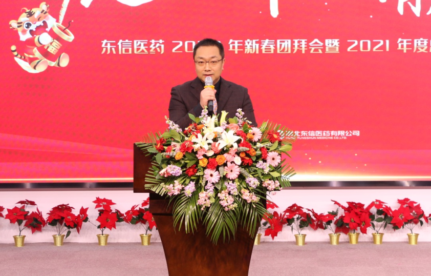 湖北東信醫(yī)藥有限公司總經(jīng)理黃少偉先生在會上致新春賀詞,向東信醫(yī)藥全體同仁及家人致以節(jié)日的問候和新春的祝福。黃總在致辭中回顧了東信醫(yī)藥在過去的一年中經(jīng)歷的困難和取得的成績,勉勵大家在充滿希望的2022年“審時度勢,洞悉市場,吃透政策,抓住機遇,揚長避短,在守正中創(chuàng)新,在創(chuàng)新中發(fā)展,以更加昂揚的精神狀態(tài),更加勤勉、扎實、細致的工作作風,更加務實、高效的工作方法,投入到全年的各項工作之中,全力以赴完成2022年的奮斗目標。”