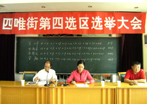 四維街第四選區(qū)選舉大會(huì)統(tǒng)計(jì)并公布所有流動(dòng)選區(qū)的票箱票選結(jié)果