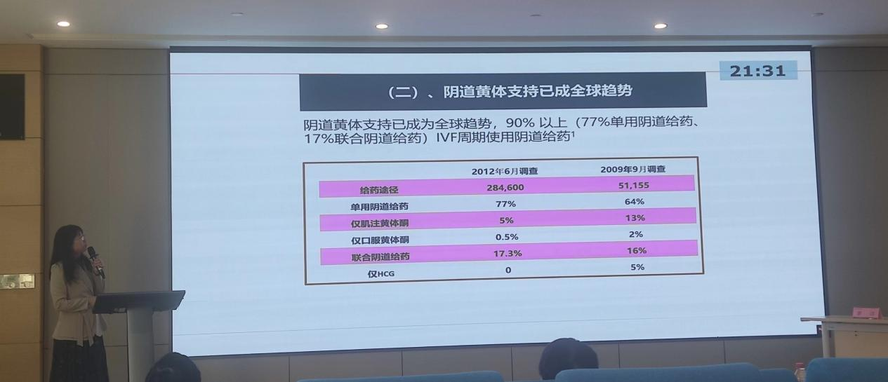 隨后,余教授提到,所有不孕癥患者中有約20%只能通過輔助生殖技術(shù)完成生育需求;而在輔助生殖(ART)治療過程中,黃體功能不足的發(fā)生率高,使用黃體酮類進(jìn)行黃體支持,已經(jīng)成為輔助生殖技術(shù)助孕中重要的治療手段。其中,陰道給藥是黃體支持的主流給藥方式。一項(xiàng)來自于全球408個(gè)中心,82個(gè)國家/地區(qū),284600個(gè)IVF周期的調(diào)研數(shù)據(jù)顯示:陰道黃體支持已成為全球趨勢(shì),90%以上(77%單用陰道給藥、17%聯(lián)合陰道給藥)IVF周期使用陰道給藥。黃體酮栓陰道給藥在國外已經(jīng)非常成熟,尤其是在歐美、日本等發(fā)達(dá)國家,無論是醫(yī)生還是患者,都對(duì)黃體酮栓劑陰道給藥的方式予以了高度的認(rèn)可。