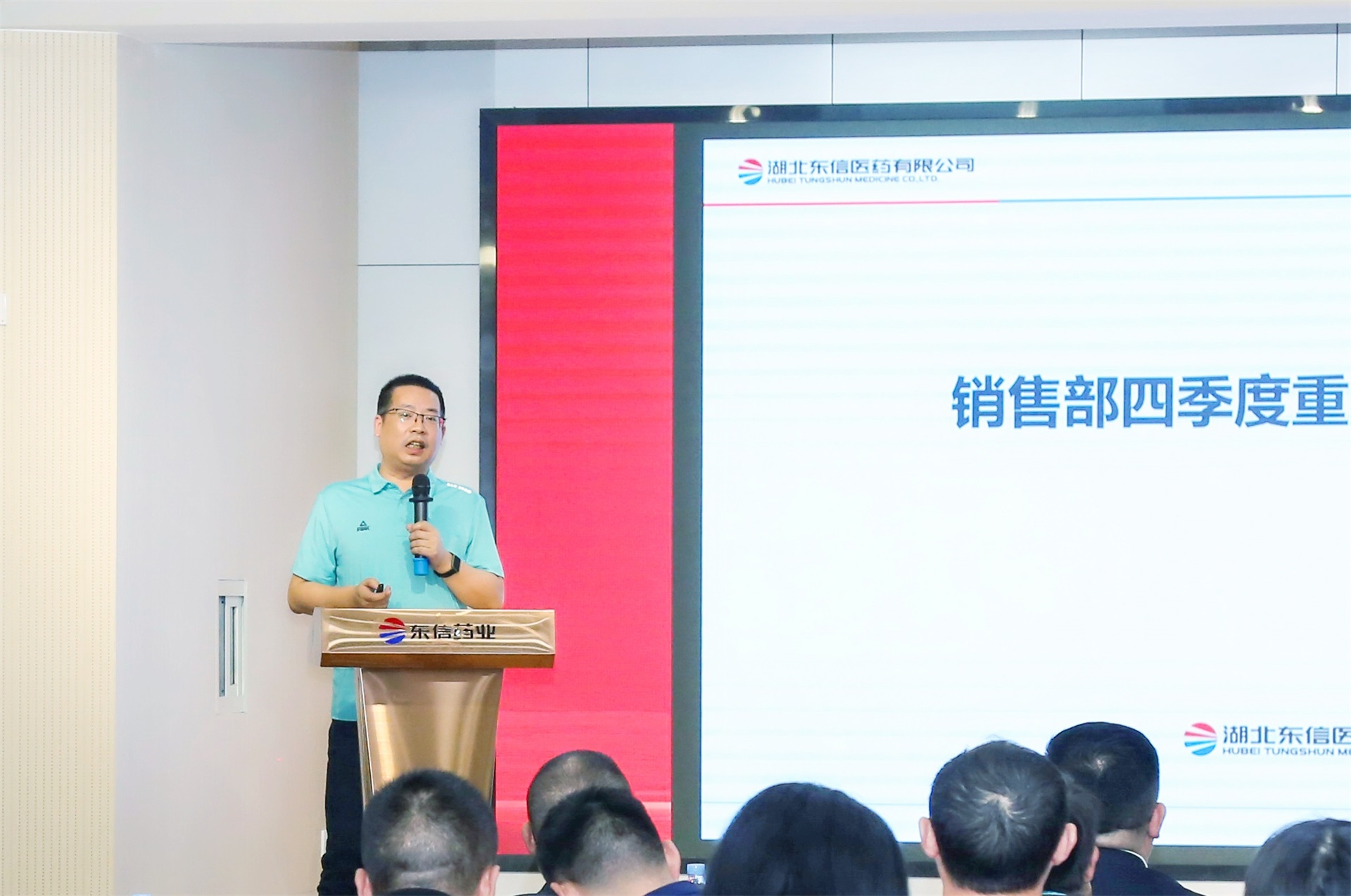2023年10月6日,東信醫(yī)藥2023年四季度銷(xiāo)售委員會(huì)會(huì)議在湖北東信藥業(yè)有限公司多功能會(huì)議室勝利召開(kāi)。銷(xiāo)售委員會(huì)的委員和部分代表共50多人匯聚一堂,總結(jié)、分析前三季度的營(yíng)銷(xiāo)工作,研究、部署四季度的營(yíng)銷(xiāo)措施。