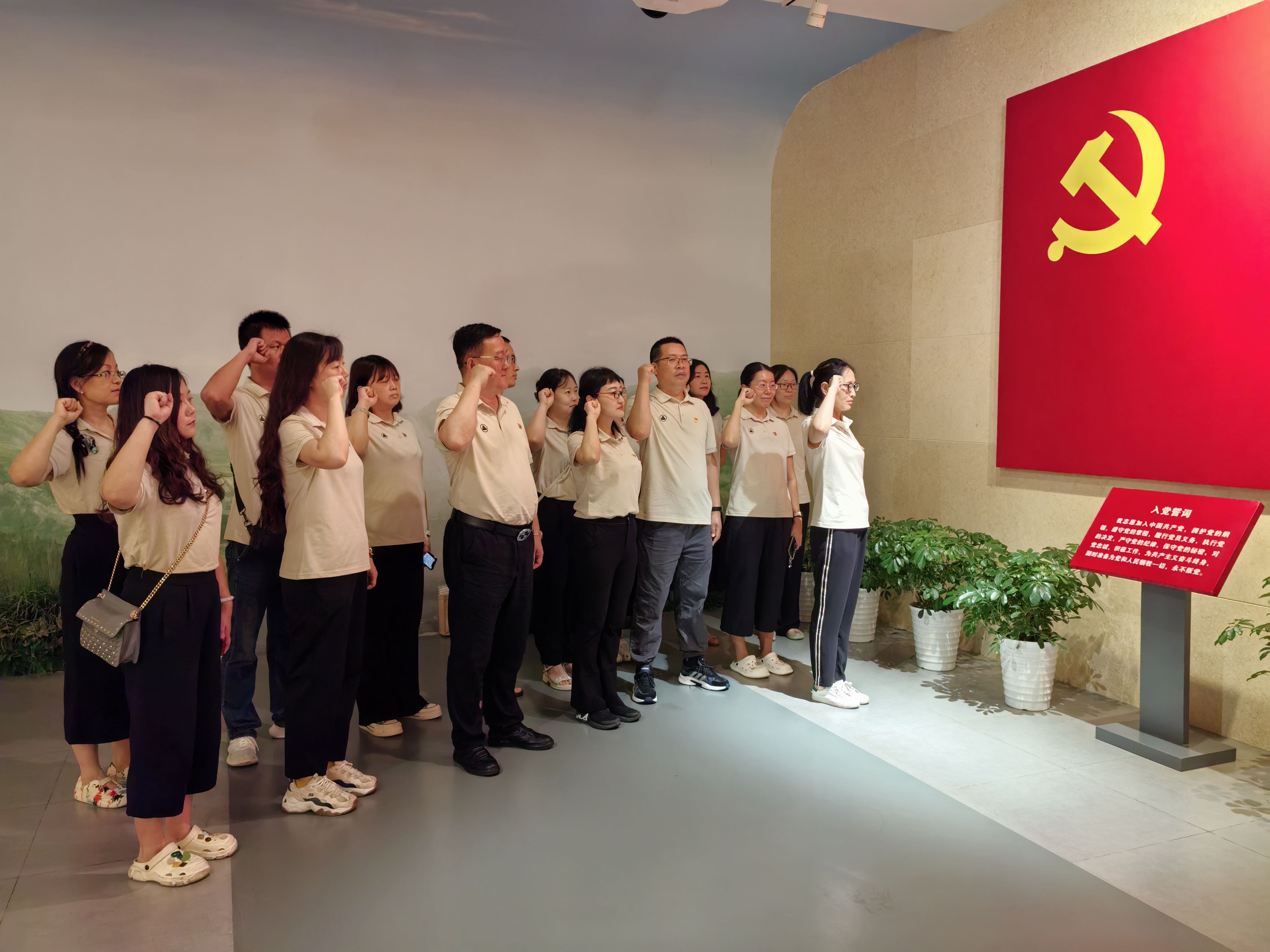 二、重溫入黨誓詞,不忘初心,牢記使命堅(jiān)定理想信念不動(dòng)搖,黨員在陳列館的巨幅黨旗下,重溫了入黨誓詞,感受到作為一名真正的共產(chǎn)黨員的責(zé)任和光榮使命。