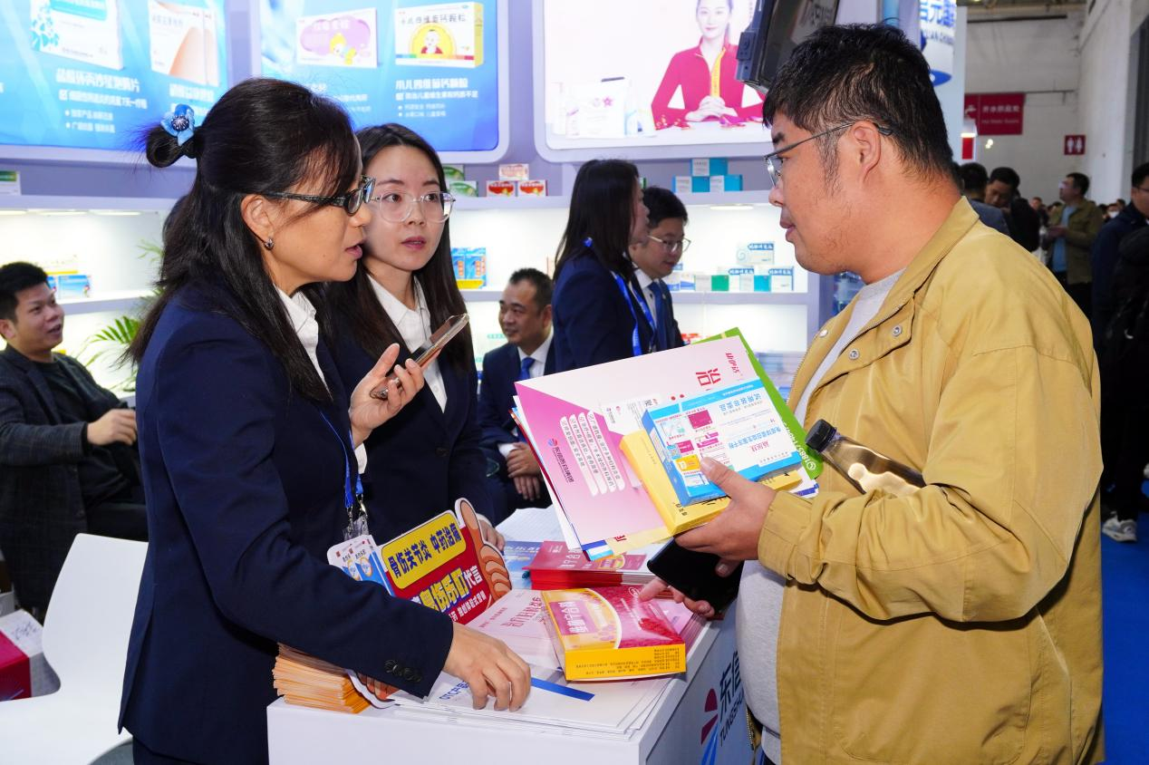 東信醫(yī)藥OTC部部長助理徐曼(左一)接待觀眾