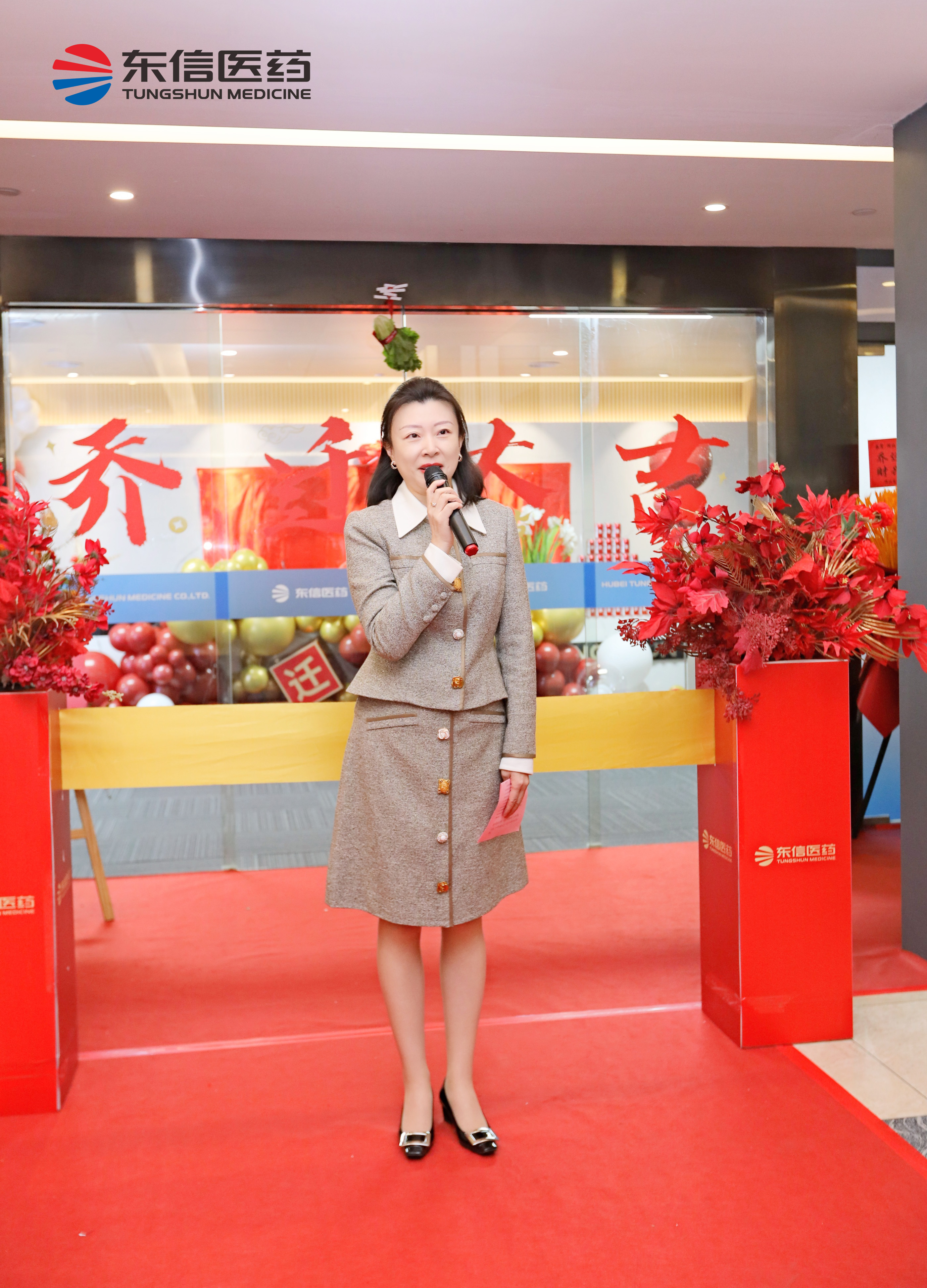 東信醫(yī)藥集團董事長田南希在喬遷儀式中致辭。田董深情回顧了東信醫(yī)藥自1998年創(chuàng)立以來的輝煌歷程,這段歷程見證了企業(yè)的成長與蛻變,凝聚了無數(shù)東信人的心血與智慧。在致辭中,田董特別指出,此次喬遷新址不僅僅是辦公環(huán)境的一次簡單升級,它更是東信醫(yī)藥發(fā)展歷程中的一個重要里程碑。新址的啟用,標志著東信醫(yī)藥將踏上一段全新的征程,開啟一個全新的發(fā)展階段。這不僅是對公司過去成就的肯定,更是對未來發(fā)展的美好期許和堅定信心。