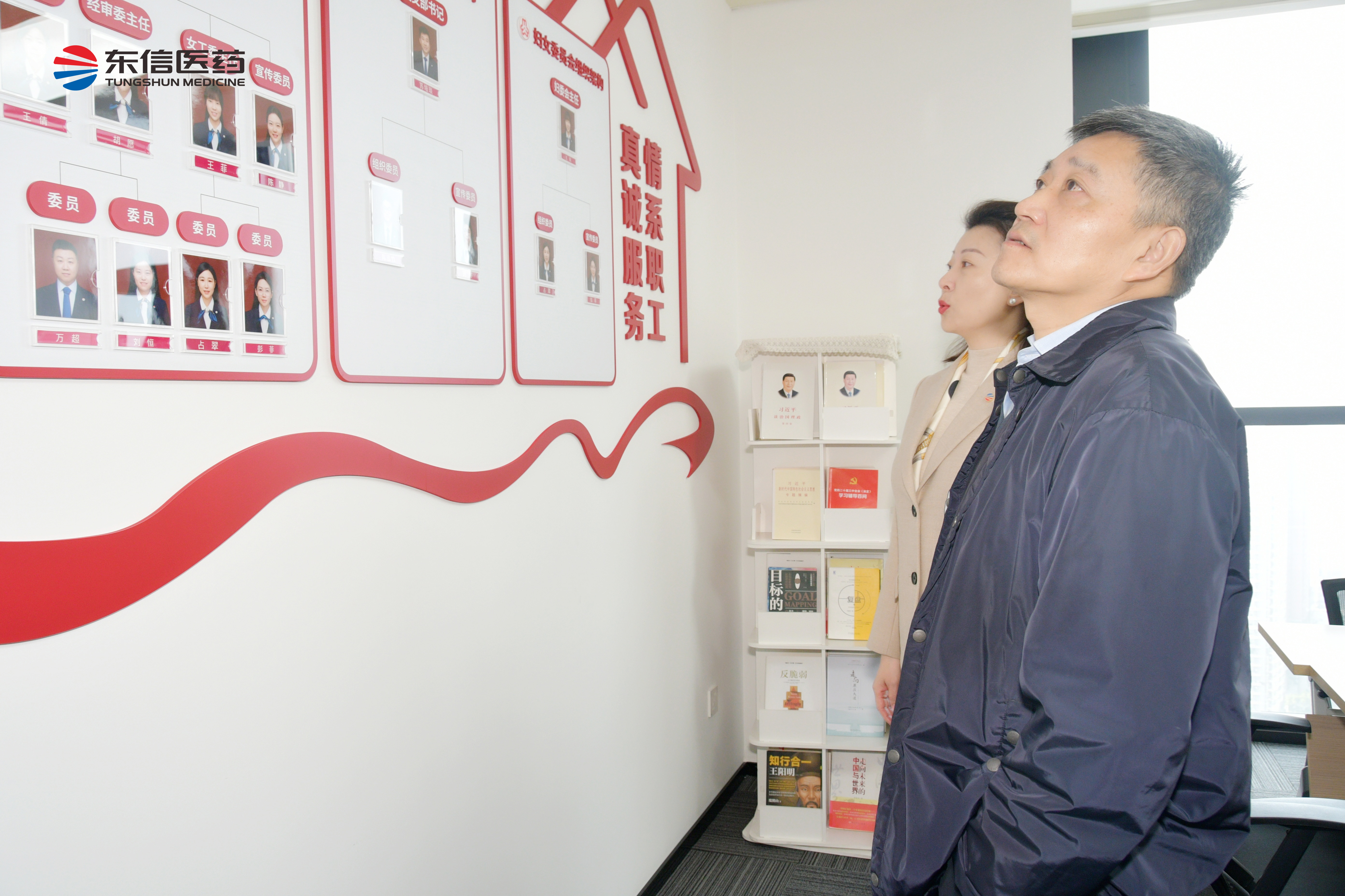 調(diào)研組一行依次參觀了東信醫(yī)藥的企業(yè)文化墻與黨建文化墻。通過(guò)現(xiàn)場(chǎng)講解與資料展示,對(duì)企業(yè)的發(fā)展歷程、文化核心理念、創(chuàng)新實(shí)踐成果,以及黨建工作的開(kāi)展情況,都有了全面且深入的認(rèn)識(shí),并對(duì)東信醫(yī)藥在黨建引領(lǐng)下取得的顯著成績(jī)給予了充分肯定。