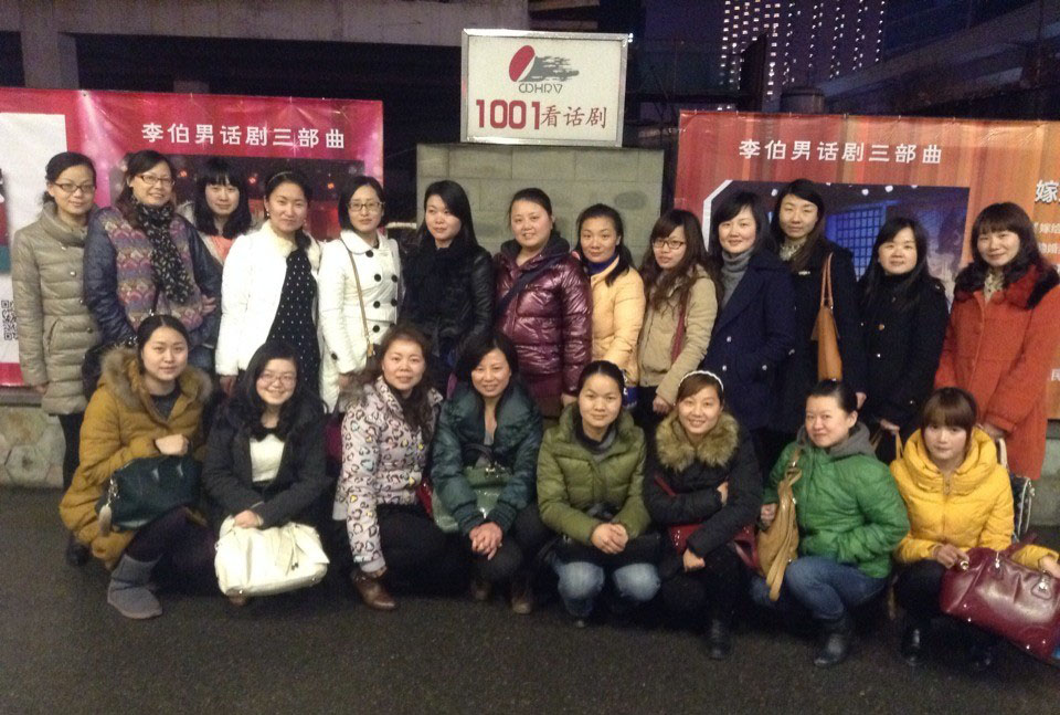 公司女員工在觀看話劇后在武漢人民藝術劇院合影