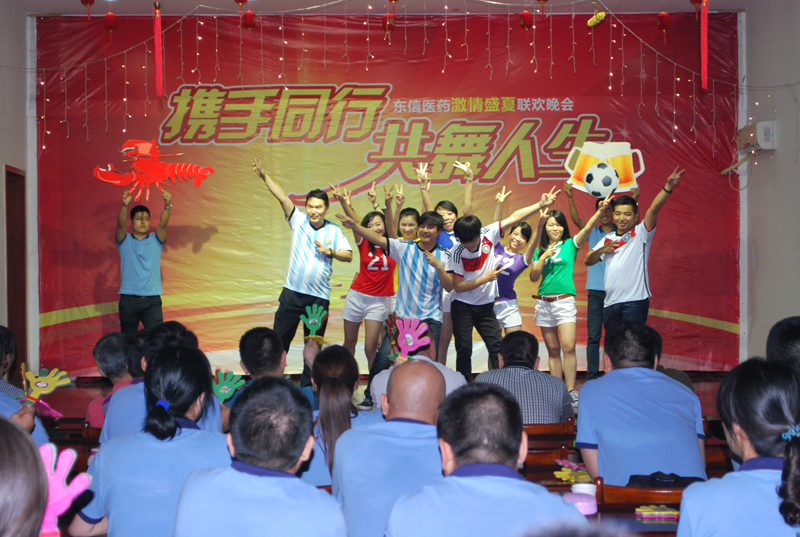 2014年7月12日,湖北東信醫(yī)藥有限公司在武漢東信醫(yī)藥科技有限責(zé)任公司會(huì)議中心舉行“攜手同行、共舞人生”激情盛夏聯(lián)歡晚會(huì)。來自全國各個(gè)省區(qū)的營銷精英和公司各職能部門的干部職工以及東信藥業(yè)、東信醫(yī)藥科技等兄弟公司的領(lǐng)導(dǎo)同事們歡聚一堂,共同慶祝東信醫(yī)藥上半年?duì)I銷團(tuán)隊(duì)學(xué)習(xí)交流大會(huì)圓滿召開,為贏取2014年全年銷售的勝利振奮士氣。
