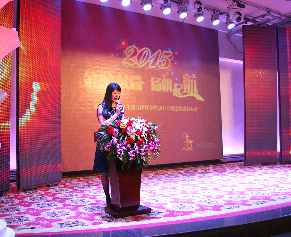 下午16:00時許,大會在財務部帶來的全民快樂的開場舞——《小蘋果》的歡快氛圍中拉開序幕。公司董事長田南希女士向大會致詞,歡迎沙市到來的周書記以及凱旋歸來的營銷將士和參加新春團拜會的東信同仁,向全體東信人致以新年的祝福。田董對公司2014年的工作和榮譽進行了總結,對2015年公司各項工作的開展提出了要求,并勉勵全體東信員工團結努力,繼續(xù)在“全員營銷”的工作理念指導下,出色完成公司2015年的目標。