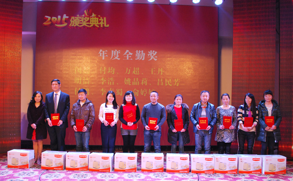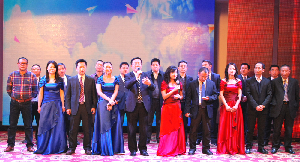 在精彩的文藝表演進行過程中,公司表彰大會也穿插進行。公司董事長田南希女士、總經理陳向先生、副總經理閔超先生、李建軍先生、銷售部、商務部、控銷部的領導以及來自東信藥業(yè)、東信醫(yī)藥科技等兄弟公司的相關領導相繼揭曉了“東信醫(yī)藥2014年度表彰大會”的各個獎項,并向獲得榮譽的先進團隊和個人頒發(fā)了平板電腦、Ipad2、液晶電視等獎品及榮譽證書。聯(lián)歡會結束后,公司全體同仁在謝先生酒店共享新年晚宴。