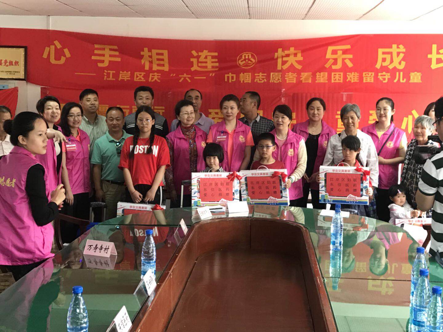 隨著外出務(wù)工的人員逐漸增多,“留守兒童”這一特殊群體也越來越受到黨和政府的高度重視,為解除外出務(wù)工人員的后顧之憂,為孩子們營(yíng)造一個(gè)健康成長(zhǎng)的學(xué)習(xí)生活環(huán)境。在第69個(gè)“六一”國(guó)際兒童節(jié)到來之際,東信醫(yī)藥集團(tuán)與江岸區(qū)婦聯(lián)、區(qū)法院、區(qū)民政局、區(qū)媒體中心和區(qū)勞動(dòng)街等單位及轄區(qū)巾幗志愿者共同來到黃陂區(qū)王家河萬壽寺村看望慰問貧困留守兒童。