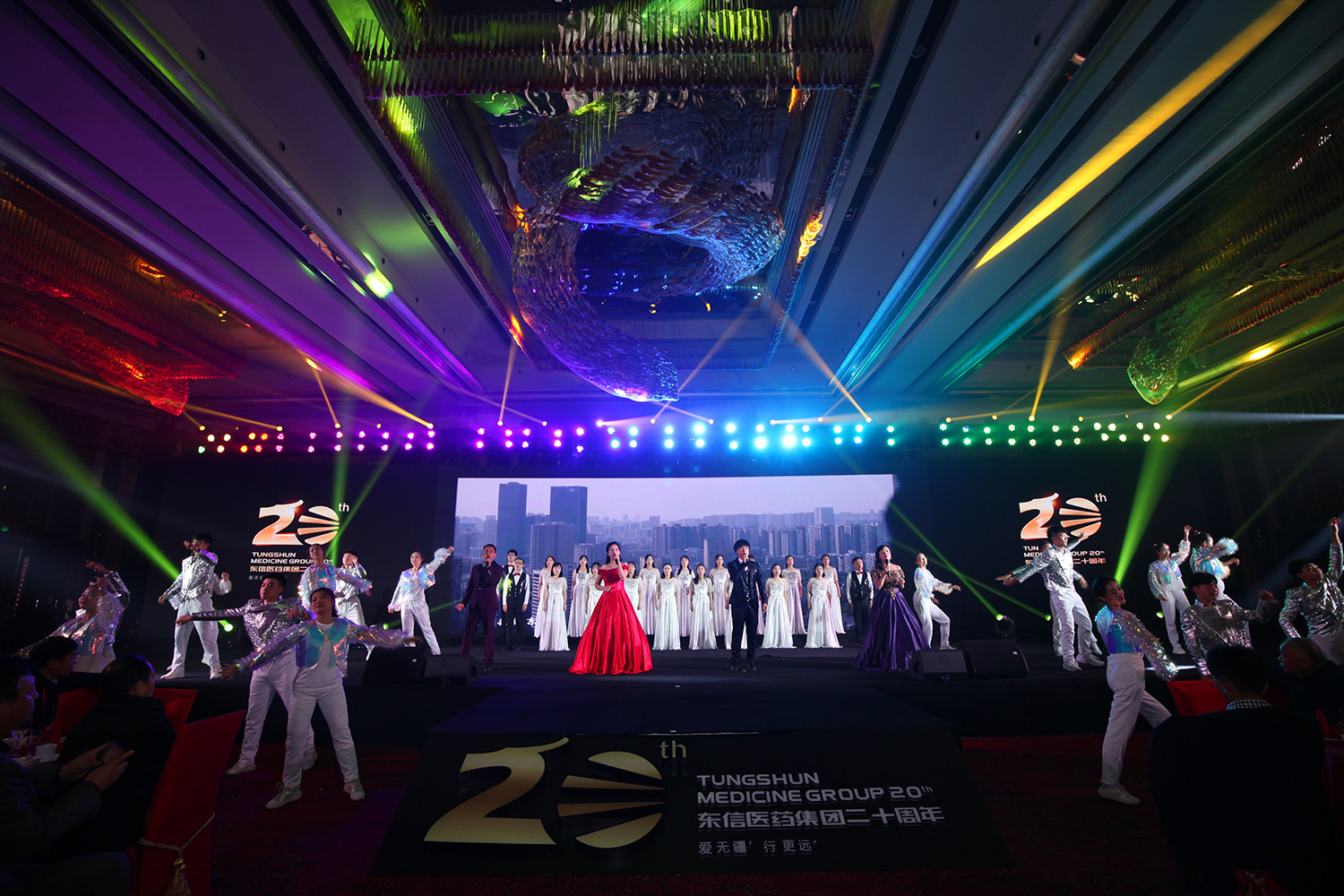 論壇結(jié)束后,東信醫(yī)藥集團(tuán)舉行了盛大的20周年慶祝晚會,醫(yī)藥企業(yè)和社會各界嘉賓共600多人出席了慶典。場外設(shè)立了時光隧道,展示了東信醫(yī)藥集團(tuán)20年發(fā)展歷程中的的精彩瞬間;在產(chǎn)品展示區(qū),陳列著東信精心奉獻(xiàn)的創(chuàng)新產(chǎn)品;田南希董事長點亮20周年簽到墻,拉開了慶典儀式的炫彩帷幕。