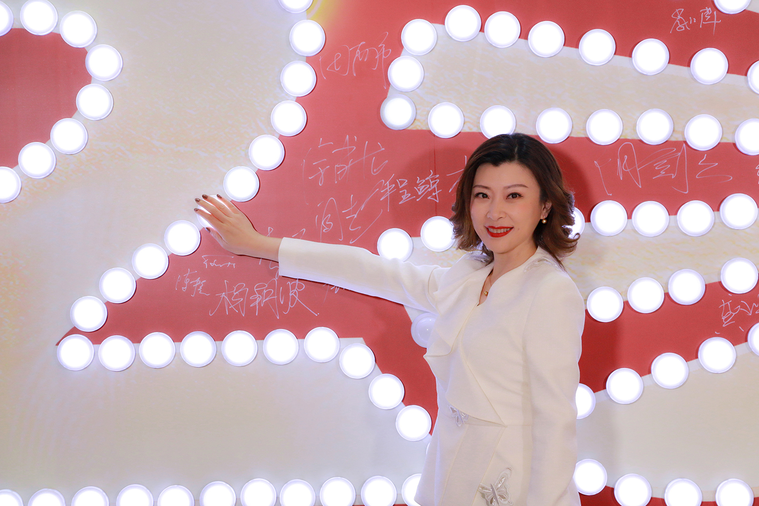 ▲ 東信醫(yī)藥集團(tuán)董事長田南希點亮20周年簽到墻