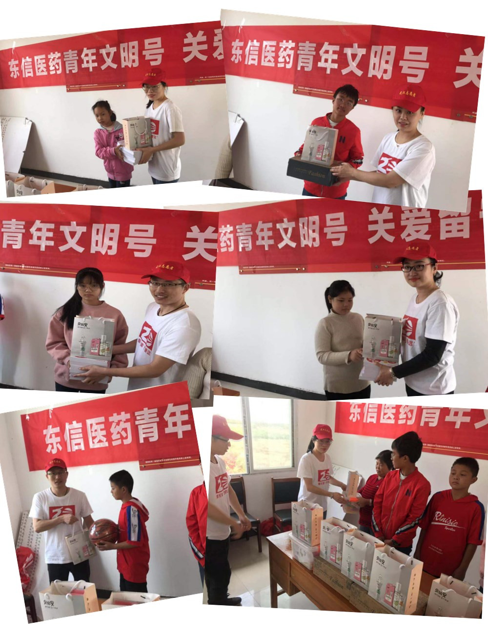 11月2日,湖北東信醫(yī)藥有限公司共青團青年文明號,在第六個全國“扶貧日”主題活動期間,走進武漢市黃陂區(qū)王家河街甘露山村,看望慰問該村貧困留守兒童。